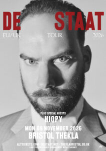 After two years of silence, De Staat returns with a long-awaited, seventh self-titled album, art installation and live show, marking nearly 25 years of pushing boundaries in the art rock landscape. Their latest creation taps into today’s dystopian anxieties like never before, where power, populism, and control collide, gradually erasing the line between reality and fiction. De Staat will tour across Europe and the UK in autumn 2026.